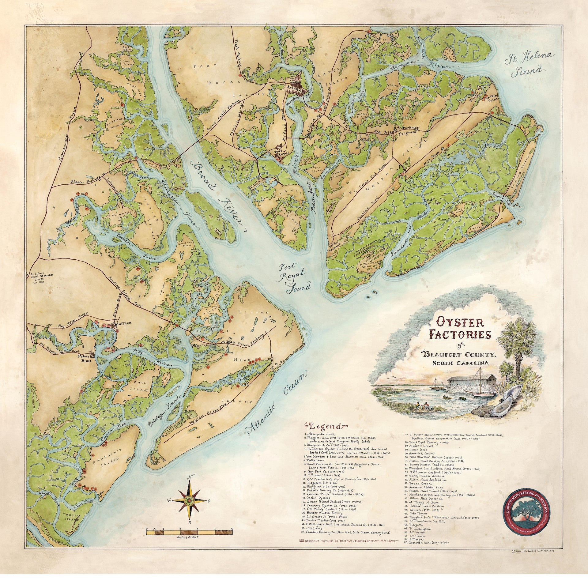 Beaufort County in the Lowcountry of South Carolina has a long history. One of the more tasteful periods was the late 19th and earyl 20th centuries when oyster factories dotted many of the islands. These houses and shacks were where oysters would be brought in from the salt marsh, shucked of their shell and packaged for shipment across the country.